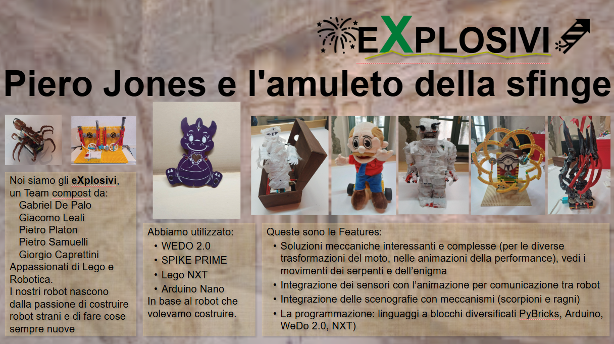 Il team ha ricreato la storia di Piero Jones, un esploratore alla ricerca del magico Amuleto della Sfinge, usando robot autonomi che: