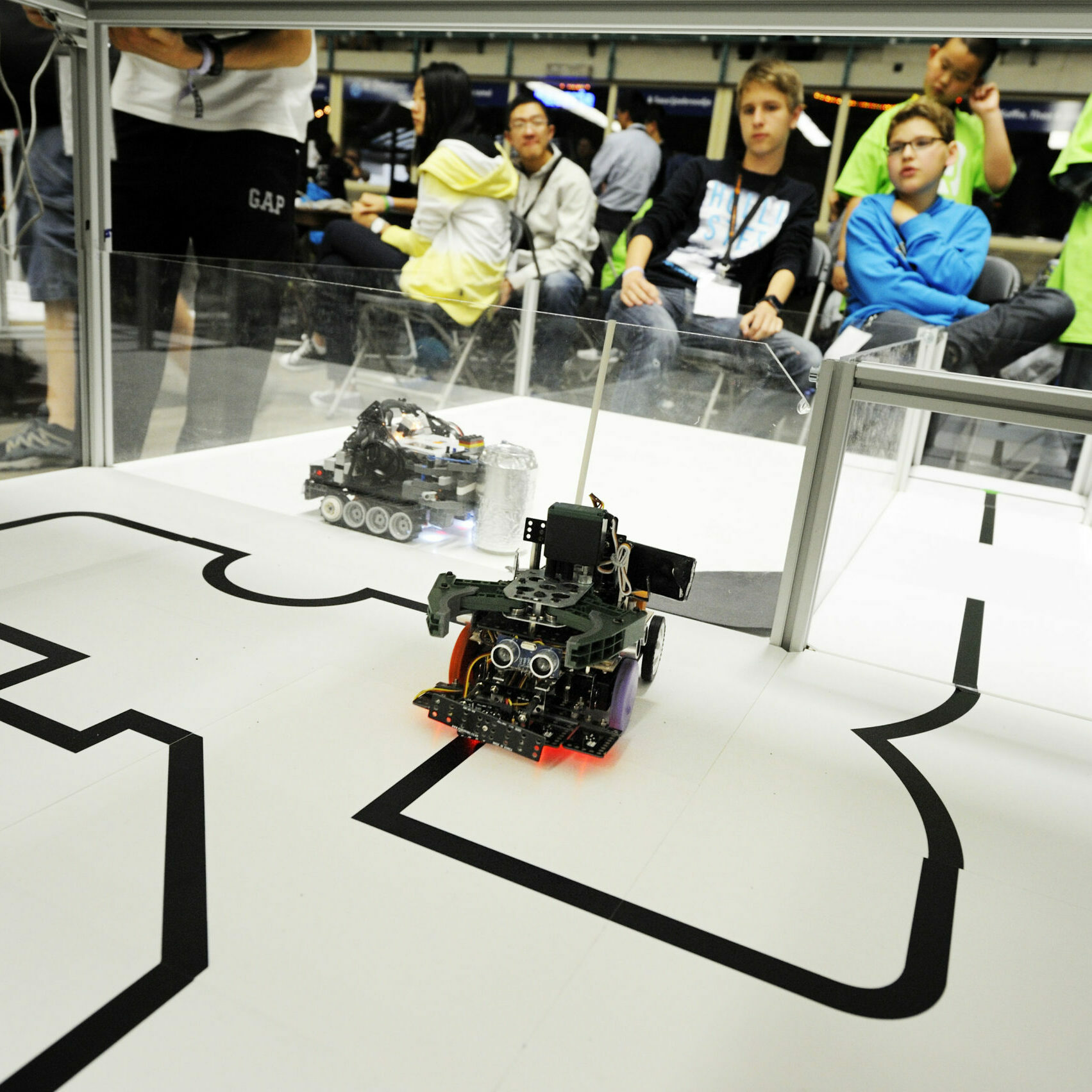 La categoria Soccer è una delle più dinamiche e competitive della WRO. Due squadre di robot autonomi si sfidano in una partita di calcio: il gioco è rapido, imprevedibile e richiede strategie avanzate. I robot devono localizzare la palla, muoversi in modo coordinato, difendere la porta e attaccare. Una sfida che unisce visione artificiale, tattica e programmazione in tempo reale, in un campo dove la collaborazione tra robot fa la differenza.